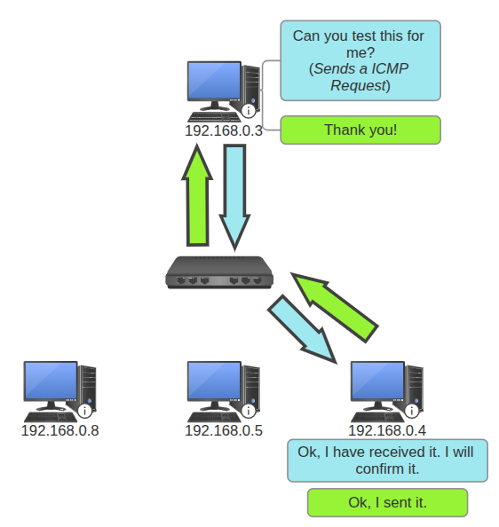 - The sender now knows the MAC address of the receiving NIC. It will now start sending a test packet to the receiver (ICMP OSI Layer 3) for diagnosis.