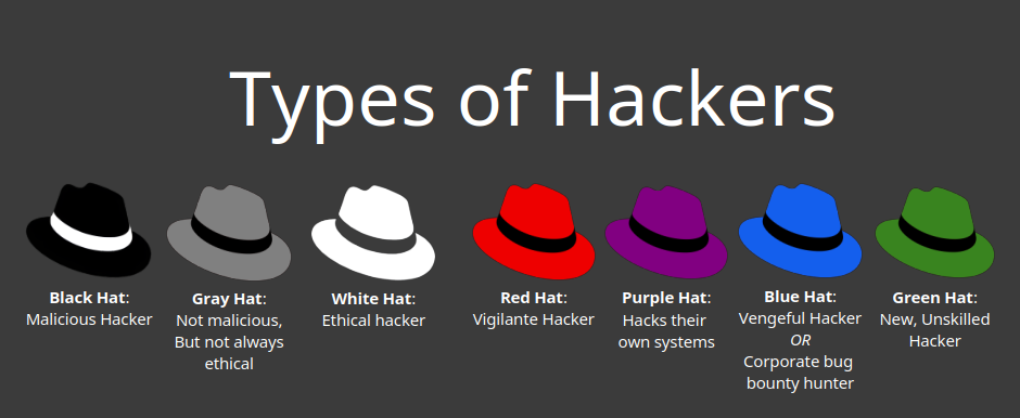 - Green: Hackers that are relatively new to the field of cybersecurity. They are committed to learn and improve their IT skills.